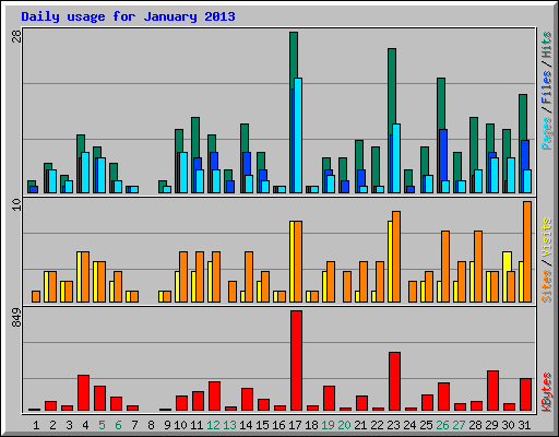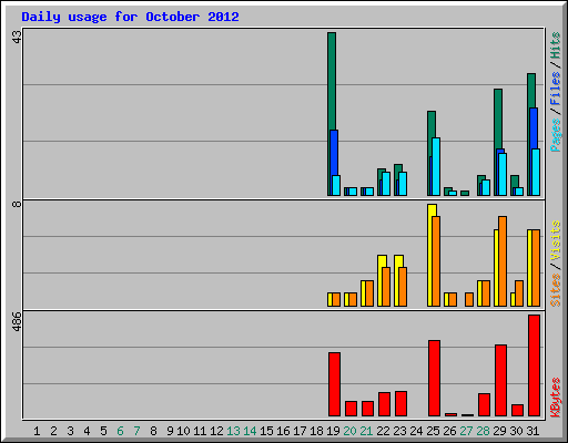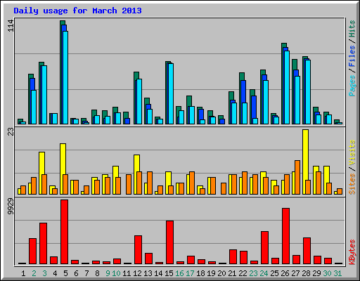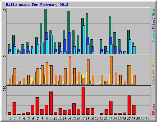 Day | Hits | Files | Pages | Visits | Sites | KBytes | ||||||