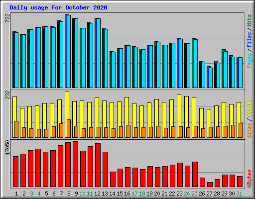 Day | Hits | Files | Pages | Visits | Sites | KBytes | ||||||